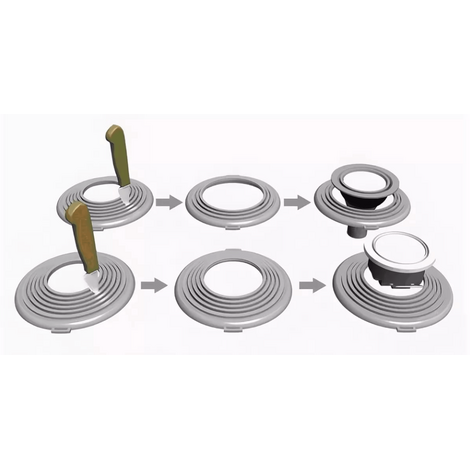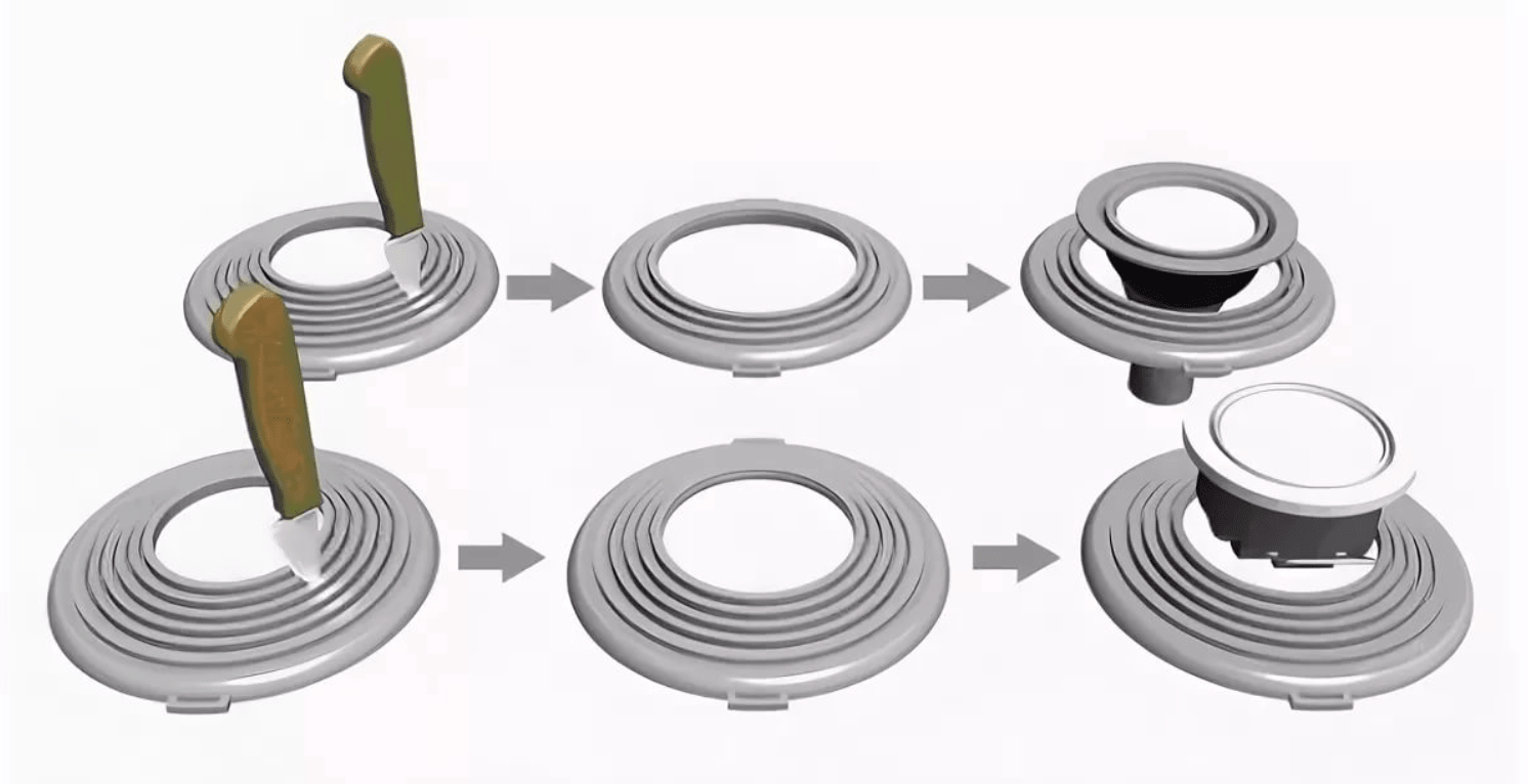 Платформа предназначена для монтажа точечных светильников различных диаметров, потолочных диффузоров, воздуховодов. Благодаря универсальности конструкции, в данную платформу можно установить светильники или другие элементы с посадочным размером от 125 до 155 мм. Шаг изменения диаметра 10 мм. При подготовке платформы к установке необходимо выбрать нужный диаметр отверстия и с помощью ножа вырезать его по специальной канавке. Для удобства крепления перфоленты ( подвесов ) на платформе имеются специальные площадки с несквозными отверстиями. Наличие ребер жесткости и специального места для крепления перфоленты обеспечивает надежность конструкции и простоту при установке.