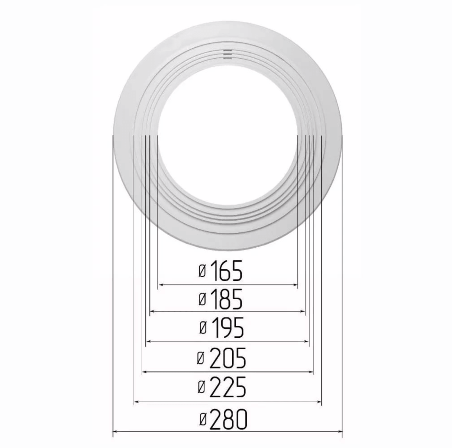 Габаритные размеры: D нар. = 280 мм. , d вн.= 165 мм.