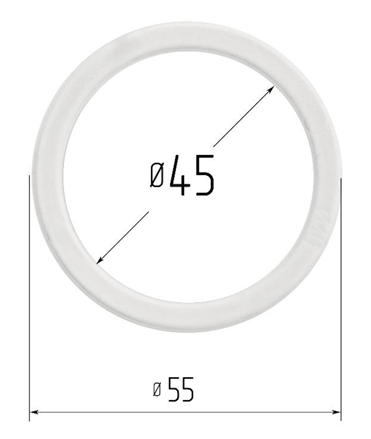 - Размер изделия, D = 55, d = 45, S = 2 мм