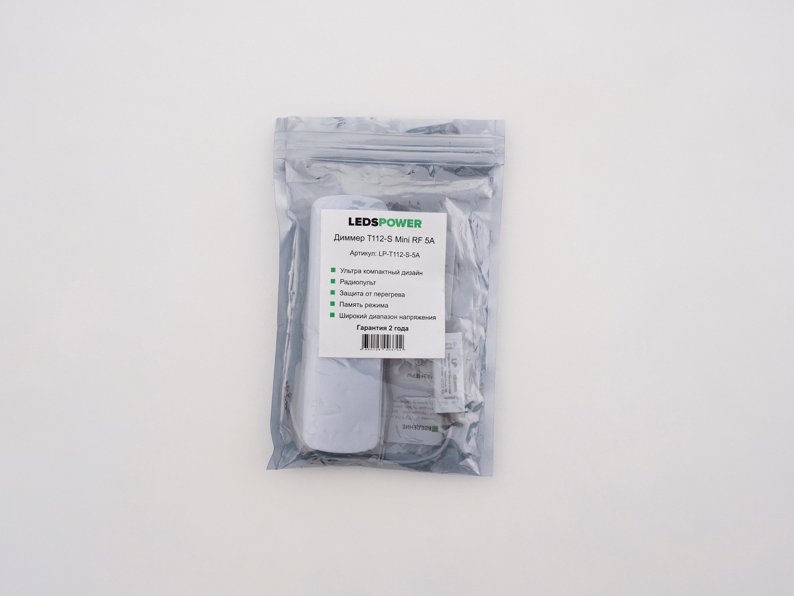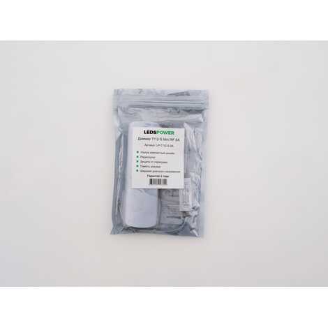Диммер T112-S Mini 5A — это устройство для управления яркостью светодиодных лент и ламп. Он работает от напряжения 5–24 В постоянного тока и имеет максимальную нагрузку 5 А. Диммер оснащён пультом дистанционного управления, который работает на частоте 433,92 МГц и обеспечивает дистанцию управления до 15 метров в открытой местности. Класс пылевлагозащиты диммера — IP20, а рабочая температура находится в диапазоне от -25 до +40 градусов Цельсия.