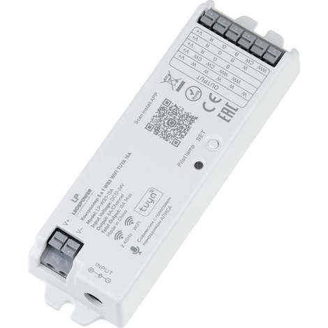 Контроллер 5 в 1 WB5 WIFI TUYA 15A — это устройство для управления светодиодной продукцией. Он подходит для одноцветных лент, лент CCT, RGB, RGBW и RGB+MIX. Контроллер имеет 4 зоны освещения, защиту от перегрева и перегрузки, работает от напряжения 12–24 В и обеспечивает максимальную нагрузку 15 А. Он поддерживает управление по Wi-Fi и радиосигналу, имеет класс защиты IP20 и работает при температуре от −25 до +40 °C.