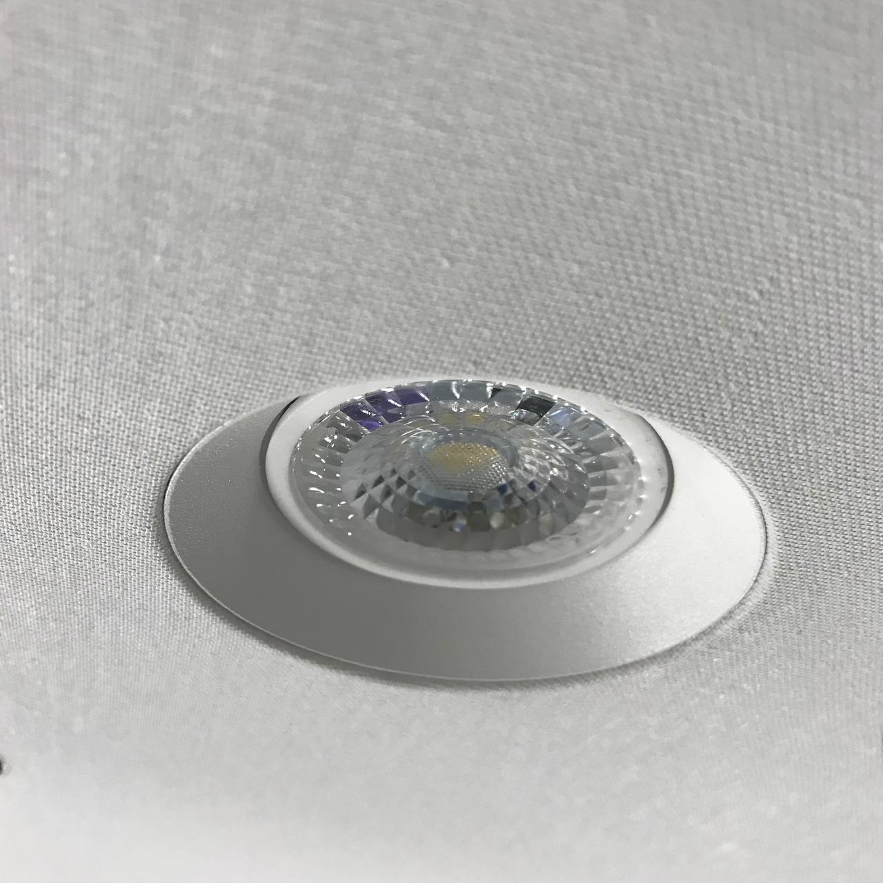 Светильник не требующий подбора закладных и дополнительных расходных материалов для его установки. Основание светильника устанавливается ДО установки полотна, а видимые части (вставка и световой модуль) – после, непосредственно в основание. При этом полотно зажимается между основанием и вставкой, что исключает использование клея.