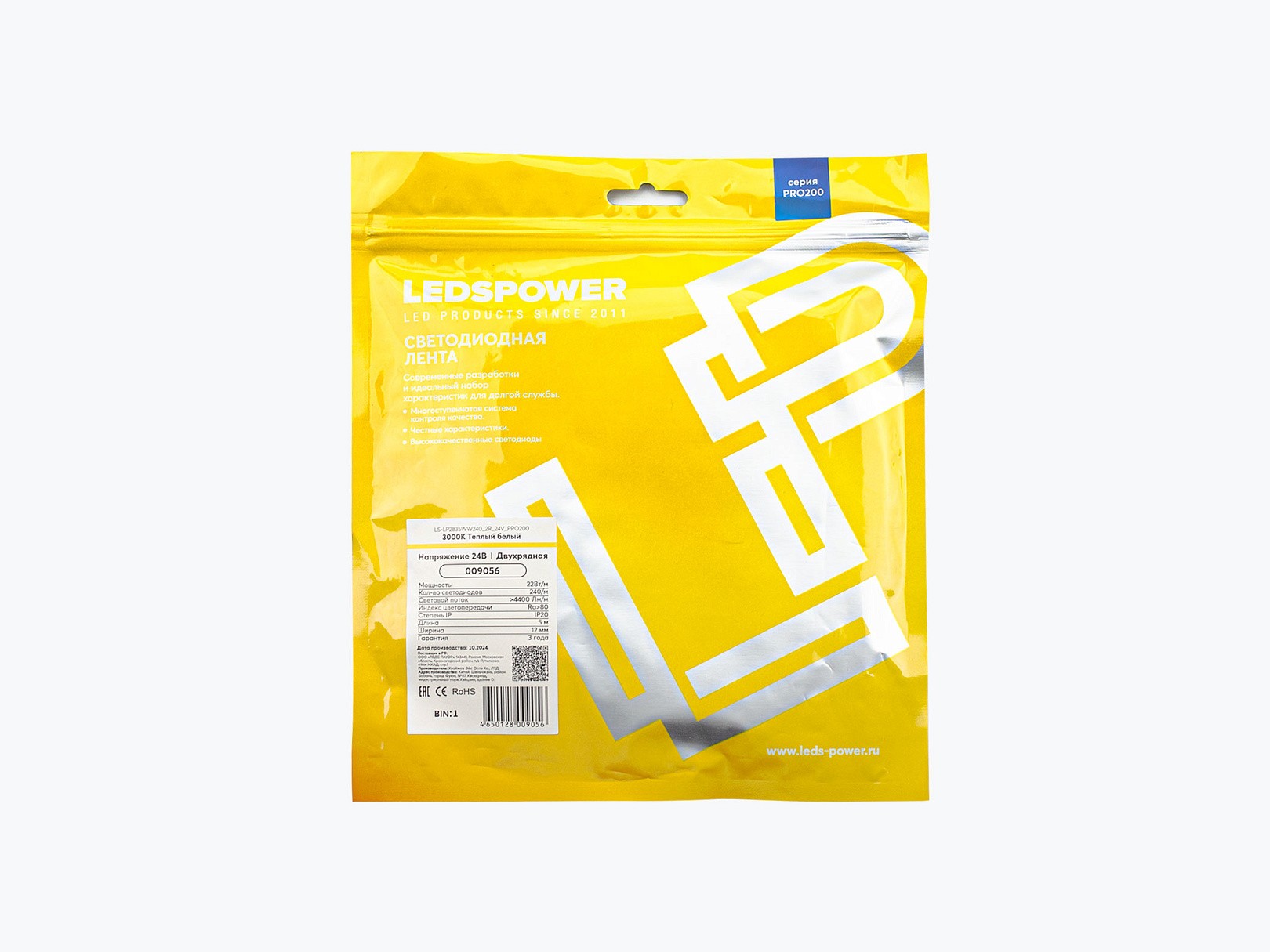 Светодиодная лента LP двухрядная 2835 240/м (22 Вт/м) с напряжением 24 В и нейтральным цветом относится к серии ПРО200 (008936). Лента имеет 240 светодиодов на метр и обеспечивает световой поток 4400 лм на 1 метр. Она потребляет мощность 22 Вт на метр и работает от постоянного тока 24 В. Лента защищена от пыли и влаги по классу IP20 и имеет размеры 10 x 2,75 мм.