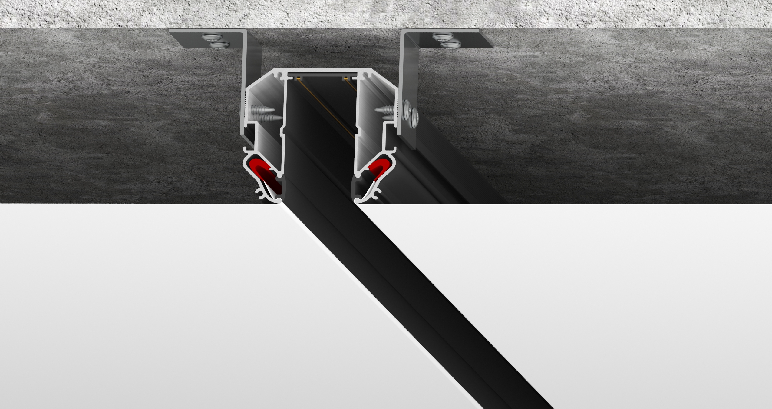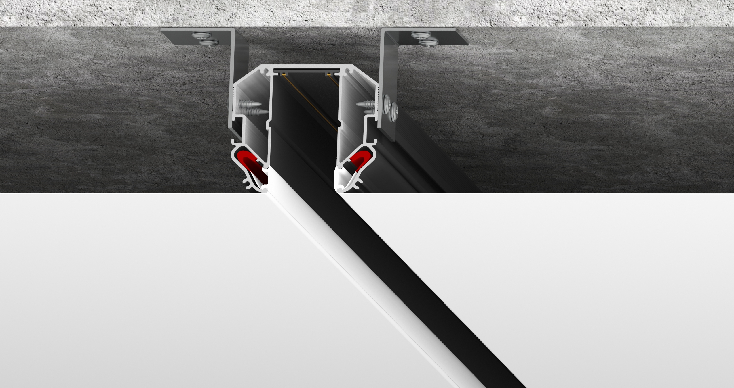 - полная интеграция в конструкцию натяжного потолка без зазоров и щелей