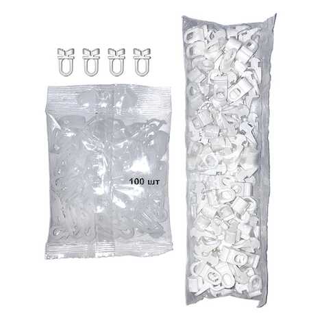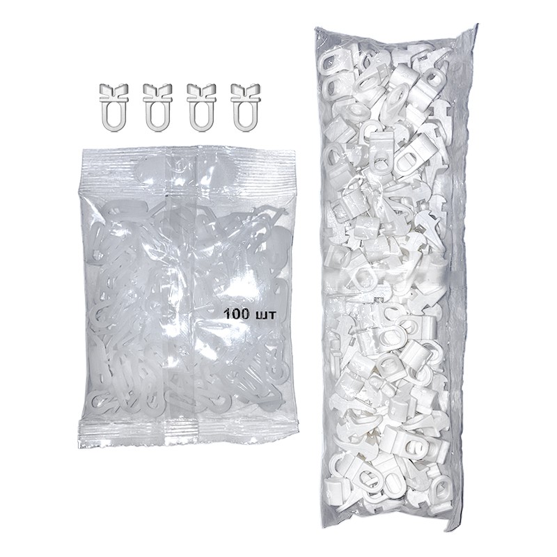 Крючок с бегунком LumFer (комплект 100 шт.) + 4 стопора для профиля SK 01 белый, SK 02 белый, SK 03 белый.