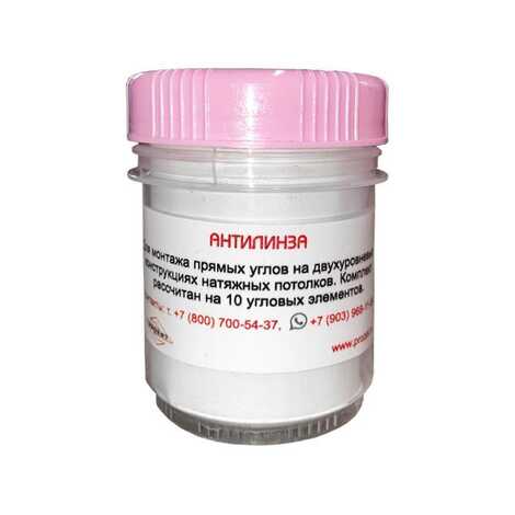 Комплект «Антилинза» – это не просто набор инструментов, а полноценное комплексное решение, которое поможет вам выполнить работу на высоком профессиональном уровне. Включая в себя 10 полосок двустороннего скотча и 25 мл праймера особенностей раскроя и способа монтажа, этот комплект обеспечит вам все необходимое для качественной установки прямого угла.