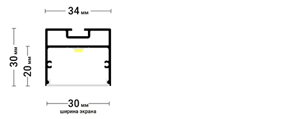 - Светодиодная лента Можно крепить в 2 ряда. Закрывается светорассеивающей вставкой или экраном белого или черного цвета. Легкий доступ для замены, без съема полотна.