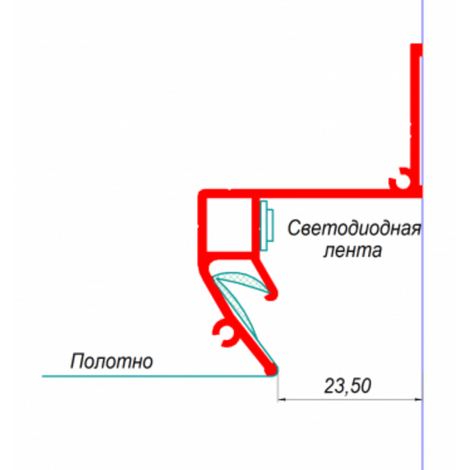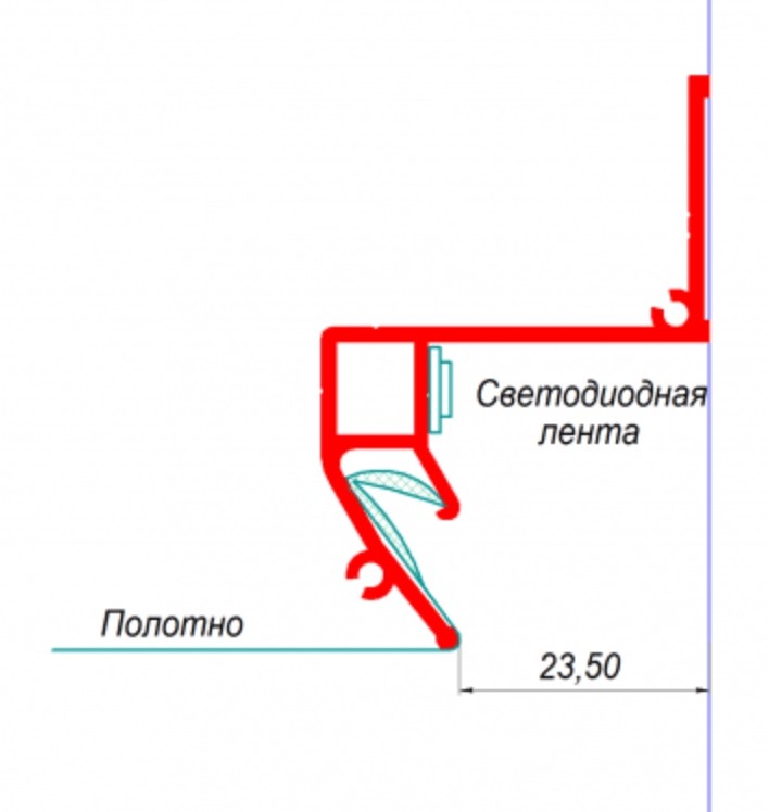 - Расстояние от стены до края профиля составляет 23,5 мм, что позволяет создать световой поток, направленный вниз на стену. Для ровного освещения стены желательно её предварительно выровнять.