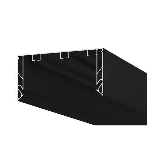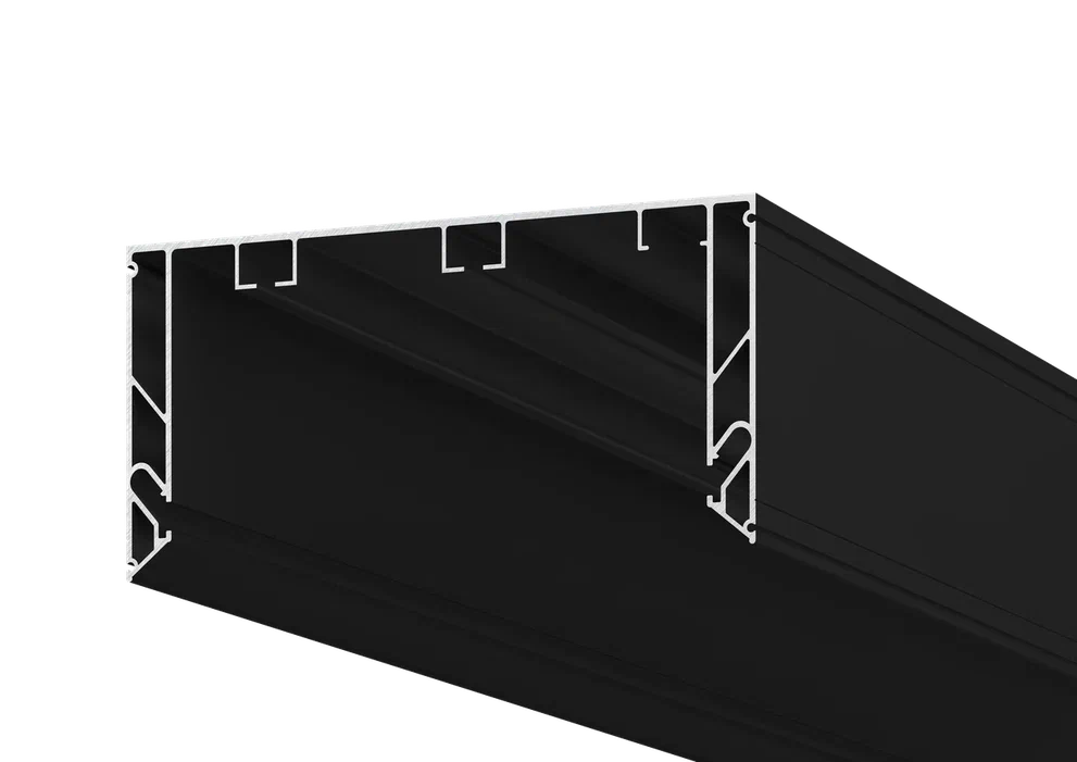 Профиль X-Line X 70 — это двухрядная гардина чёрного цвета, предназначенная для натяжных потолков. Она изготовлена из алюминия и имеет размеры 70 × 130 мм (высота и ширина ниши соответственно). Профиль обеспечивает два ряда крепления крючков для штор и место для установки светодиодной подсветки. Расстояние между рядами составляет 60 мм и 55 мм, а глубина дорожек — 70 мм.