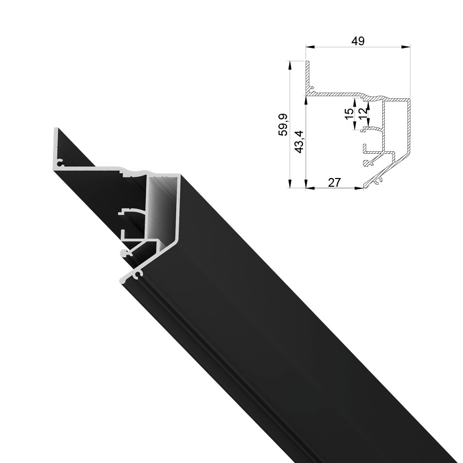 Предназначен для установки безрамного «парящего» потолка с возможностью установки светодиодной ленты, которая впоследствии закрывается ПВХ рассеивателем для равномерного рассеивания света