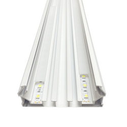 В этом профиле есть специальный паз для установки светодиодной ленты, а также рассеивающая вставка, которую можно приобрести отдельно. Кроме того, есть вставка для гарпунного паза, которая позволяет закрыть технический зазор и создать эстетически приятный вид.