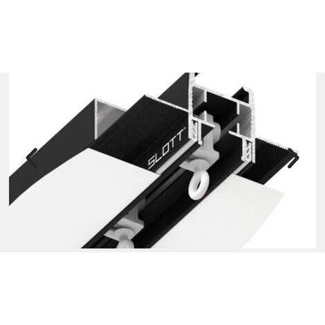 SLOTT Motion — первая карнизная система, которую можно встраивать в потолок без применения дополнительных профилей и монтажа ниш. Решение осуществимо благодаря демпферной системе SLOTT. Именно она позволяет встроить такой карниз в потолки с ПВХ, тканевые и даже из гипсокартона. Профиль поставляется в комплекте с демпфером