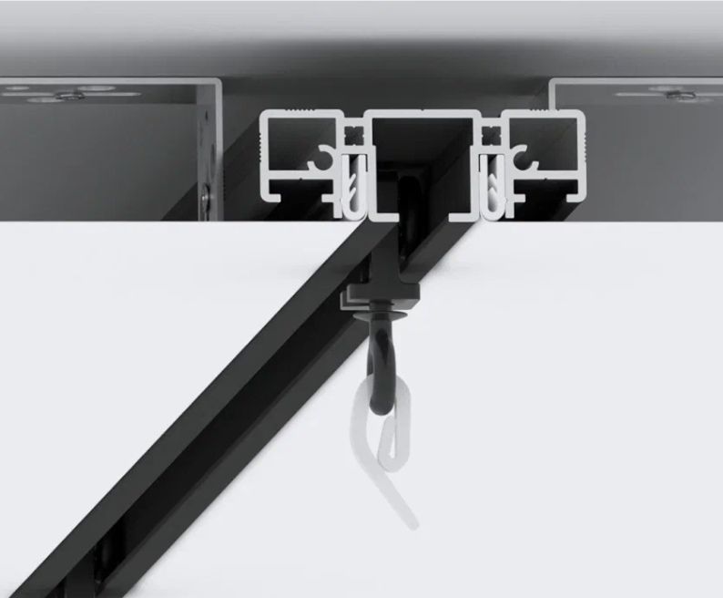 Однорядный встроенный шторный карниз SLIM Road 01 имеет компактные размеры и высоту профиля всего 17,5 мм, что позволяет существенно сохранить высоту финишного потолка. Система имеет минималистичный вид и не требует дополнительного монтажа ниши. Допускается вариант установки однорядных карнизов в два или три ряда с целью лучшего внешнего вида и увеличения расстояния между линиями карнизов. Важной особенностью системы являются специальные прорезиненные бегунки чёрного или белого цвета. Профиль снабжен демпферной системой для монтажа ПВХ и тканевых полотен.