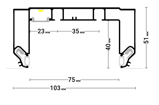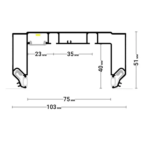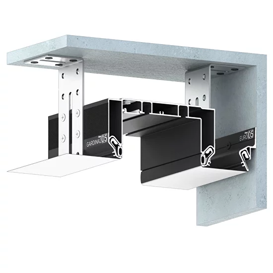 Профиль Flexy GARDINA2 05 для изготовления скрытых п-образных карнизных ниш с двумя пазами для установки штор и гардин. С подсветкой. Для гарпунной системы крепления полотна.