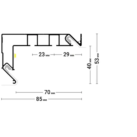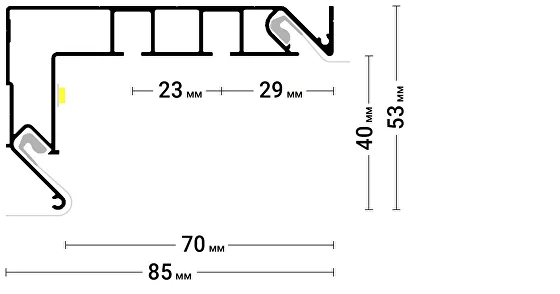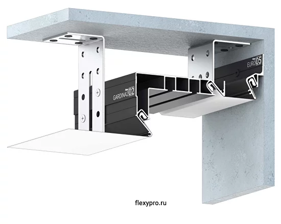 Профиль Flexy GARDINA2 02 (профиль ПФ 8048-GARDINA2 02) для изготовления скрытых карнизных ниш с двумя пазами для установки штор и гардин.