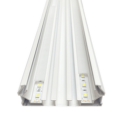 В этом профиле есть специальный паз для установки светодиодной ленты, а также рассеивающая вставка, которую можно приобрести отдельно. Кроме того, есть вставка для гарпунного паза, которая позволяет закрыть технический зазор и создать эстетически приятный вид.