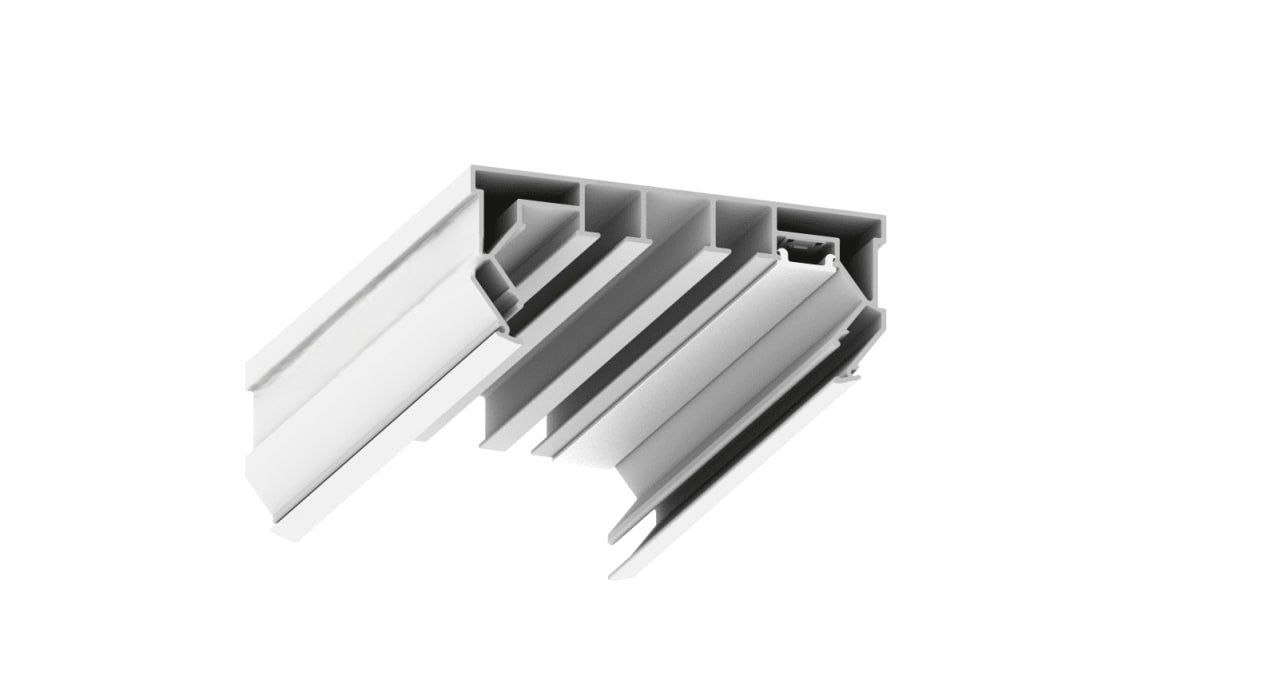 В этом профиле есть специальный паз для установки светодиодной ленты, а также рассеивающая вставка, которую можно приобрести отдельно. Кроме того, есть вставка для гарпунного паза, которая позволяет закрыть технический зазор и создать эстетически приятный вид.