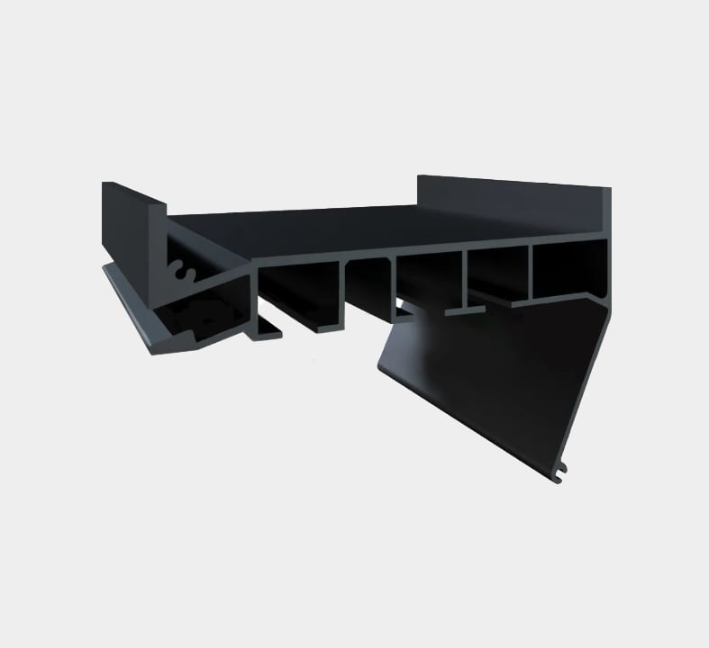 Профиль ПК5 "Гардина трёхрядная", представляет собой алюминиевый элемент, объединяющий специальный отбойник и крепежный паз гарпуна.