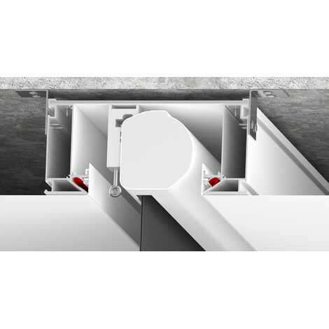 5. Скрытый трек: Шинопровод Track 30 LumFer устанавливается в нишу и крепится к композитному материалу. Таким образом шинопровод и крепление светильника максимально скрыты. Ниша бывает черного и белого цвета. В специальные пазы с двух сторон профиля устанавливается светодиодная лента. Конструкция профиля предусматривает фиксацию полотна при помощи гарпунной системы крепления. Паз для фиксации гарпуна закрывается маскирующей вставкой ПВХ черного или белого цвета.