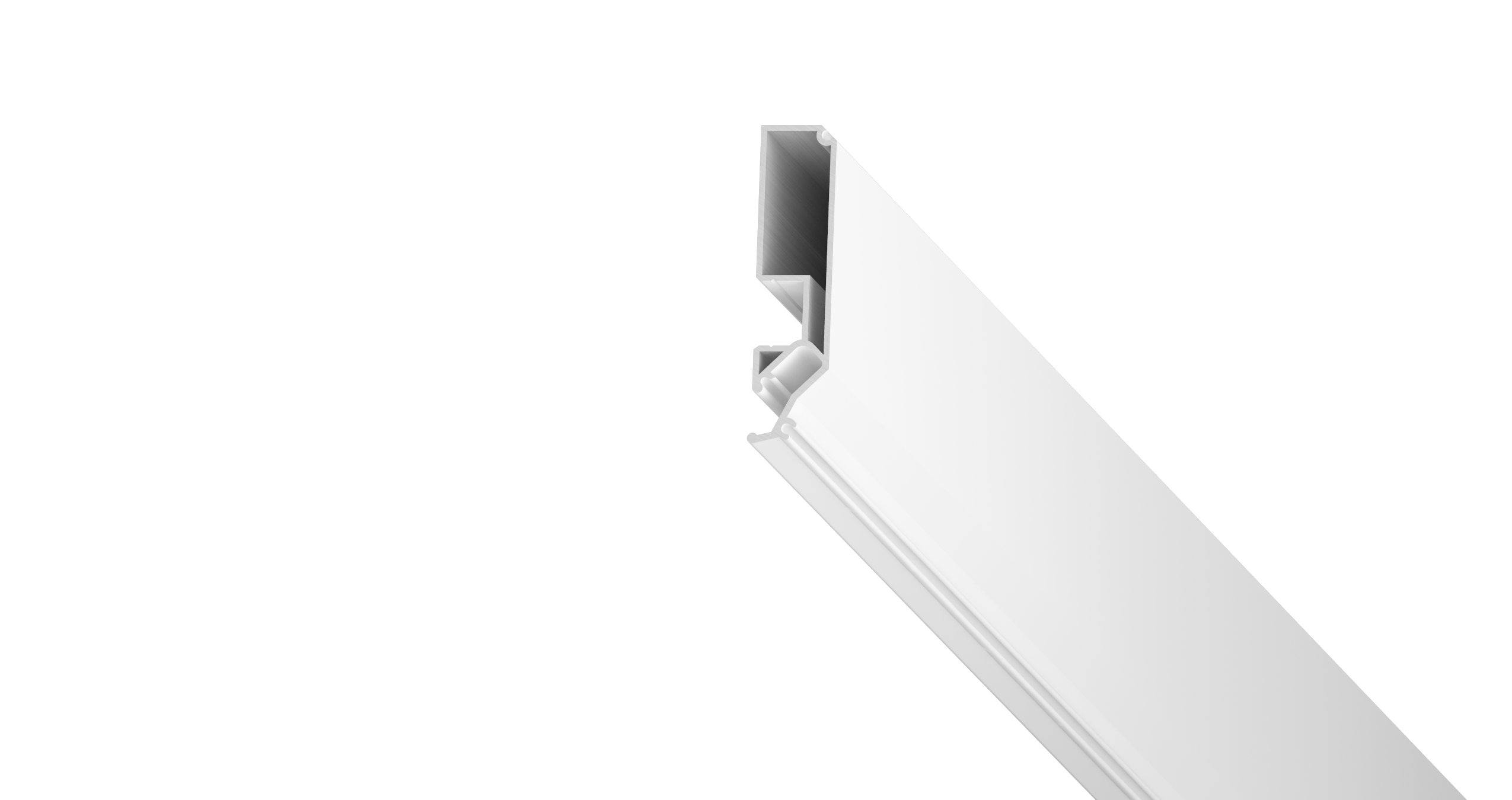 Переход для карниза – это специальный алюминиевый профиль, окрашенный в белый или черный цвет, предназначенный для изготовления ниши под карниз. Конструкция профиля предусматривает возможность установки подсветки. Паз для светодиодной ленты закрывается ПВХ рассеивателем для более равномерного и плавного рассеивания света. Паз для заправки гарпуна закрывается разделительной вставкой.