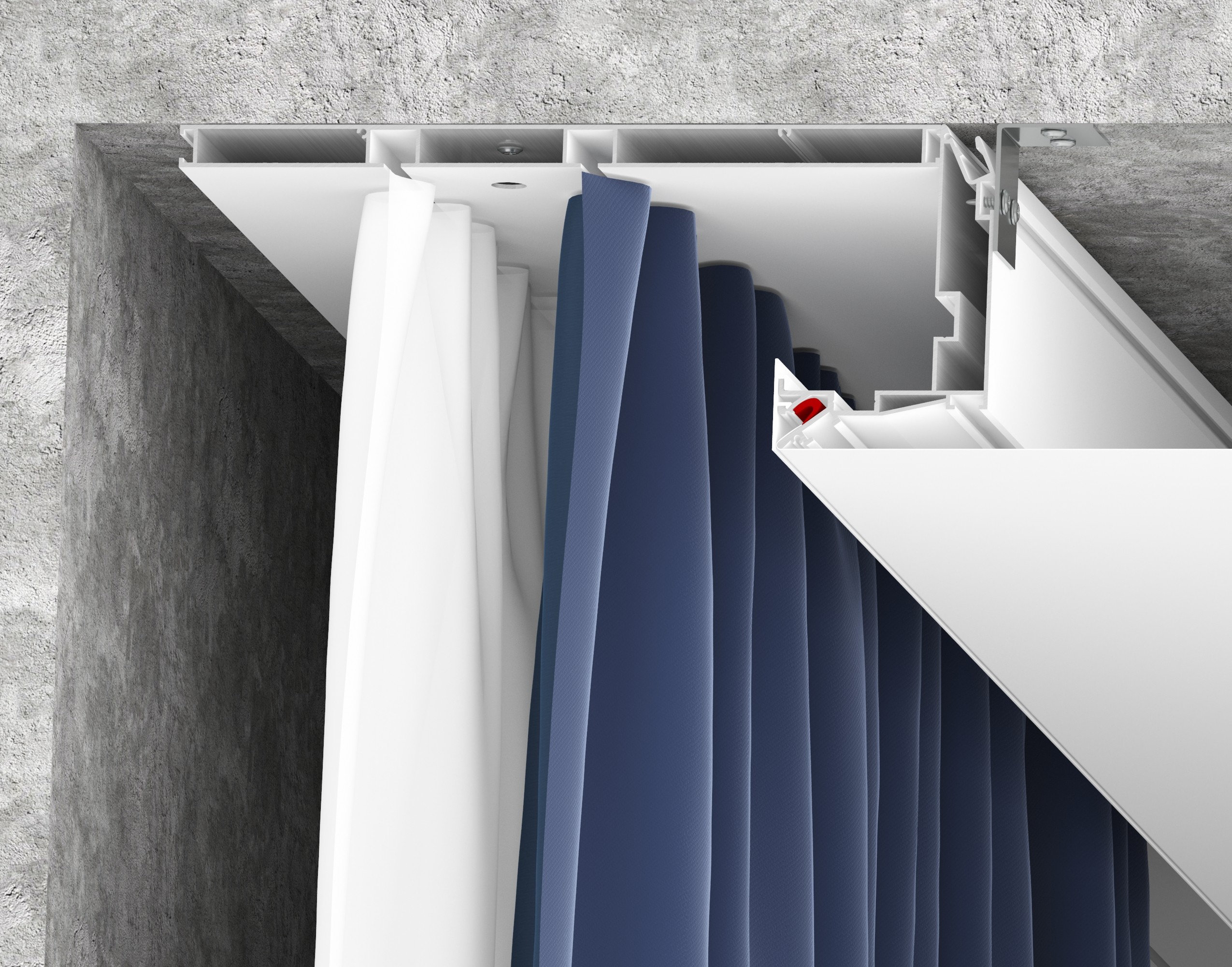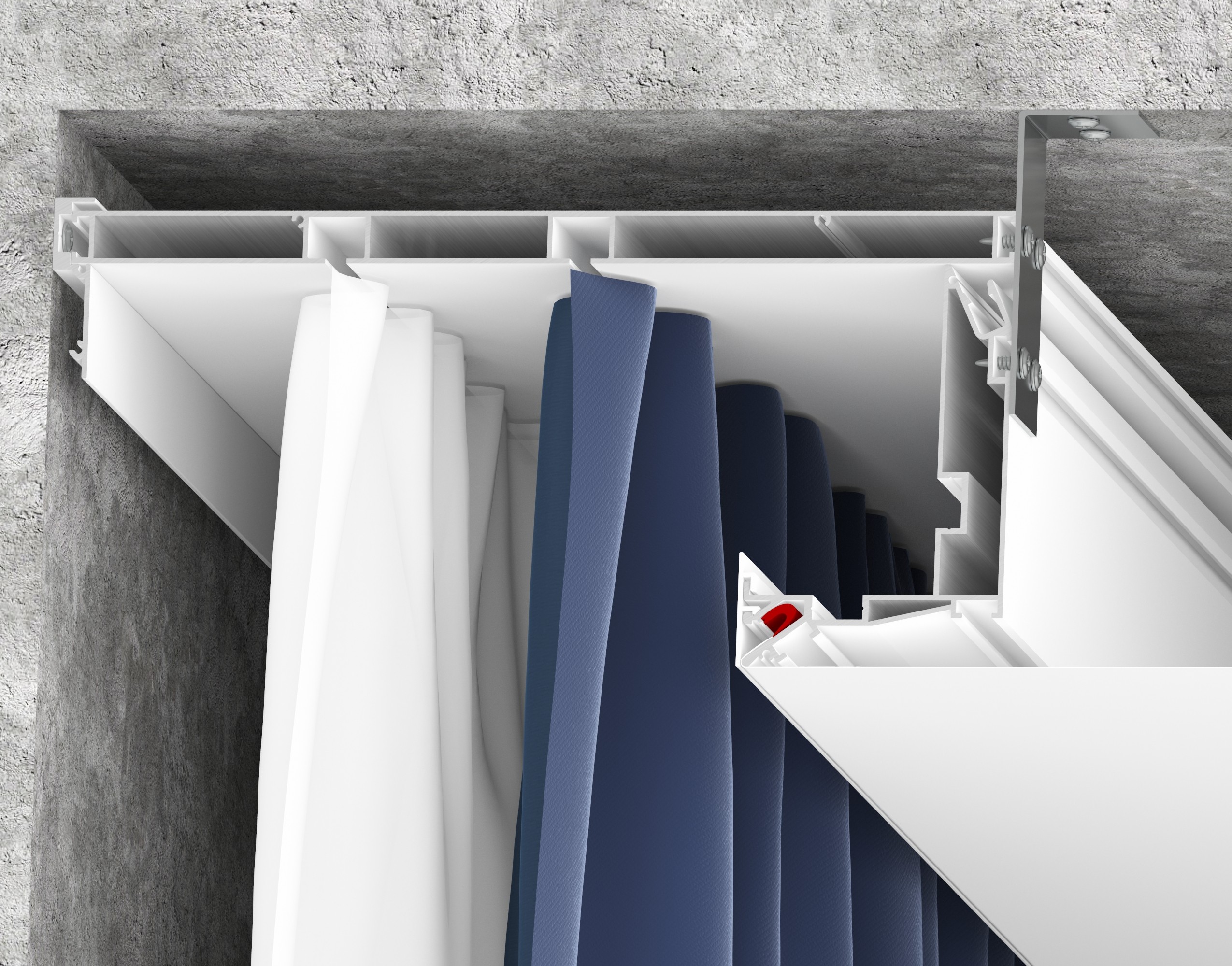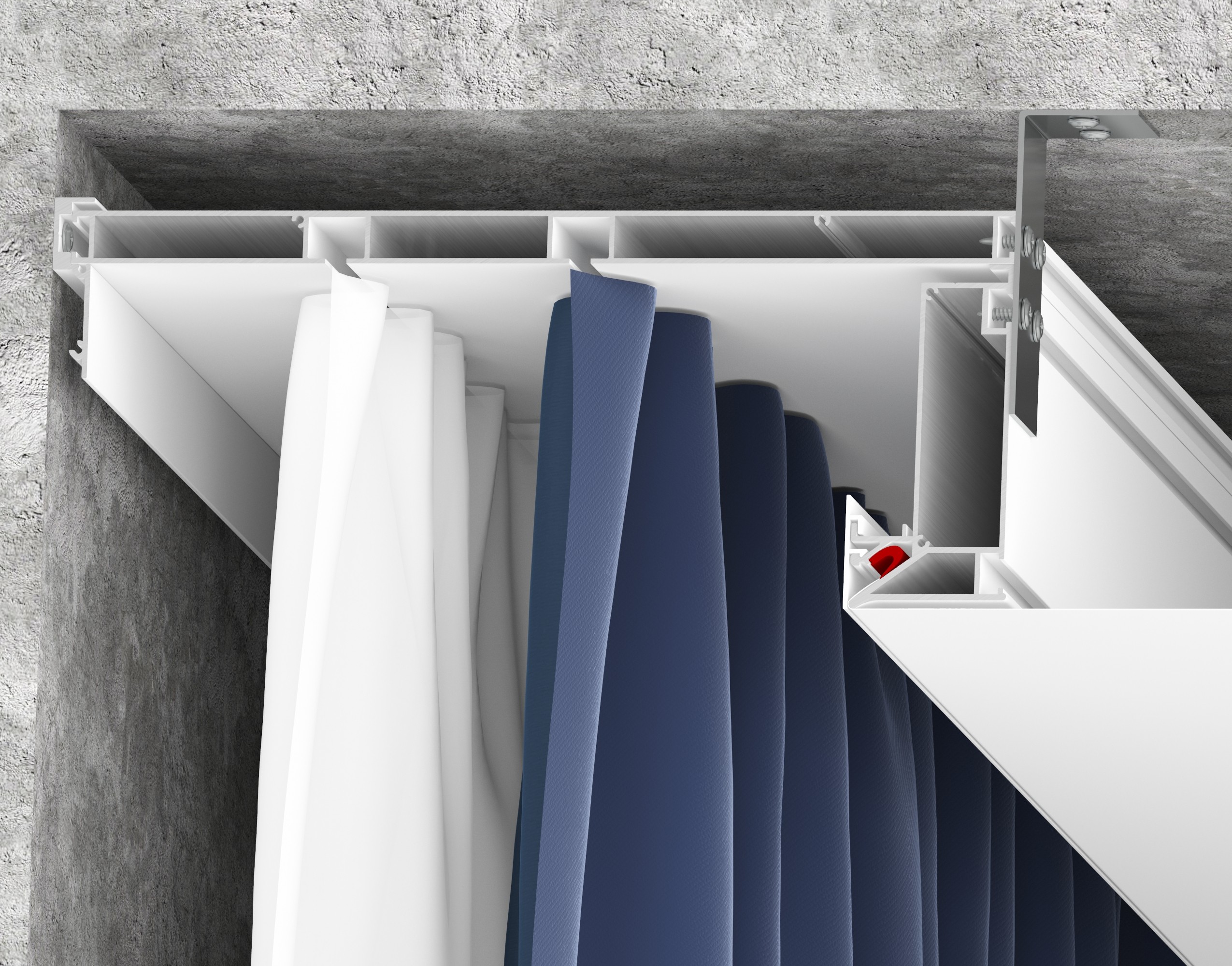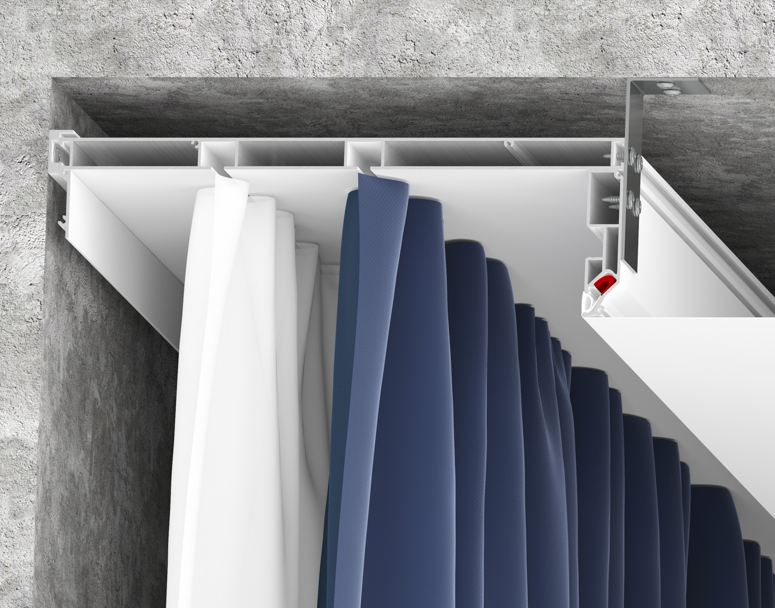 Профиль имеет оптимальную ширину и расстояние между (дорожками для крепления) рядами для крючков, чтобы складки на шторах формировались правильно, вне зависимости от их плотности и материала изготовления.