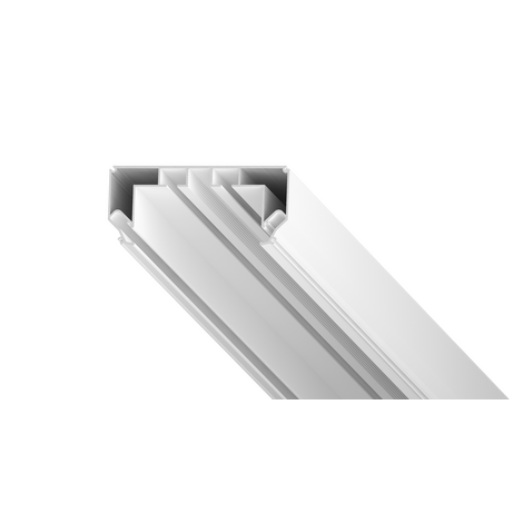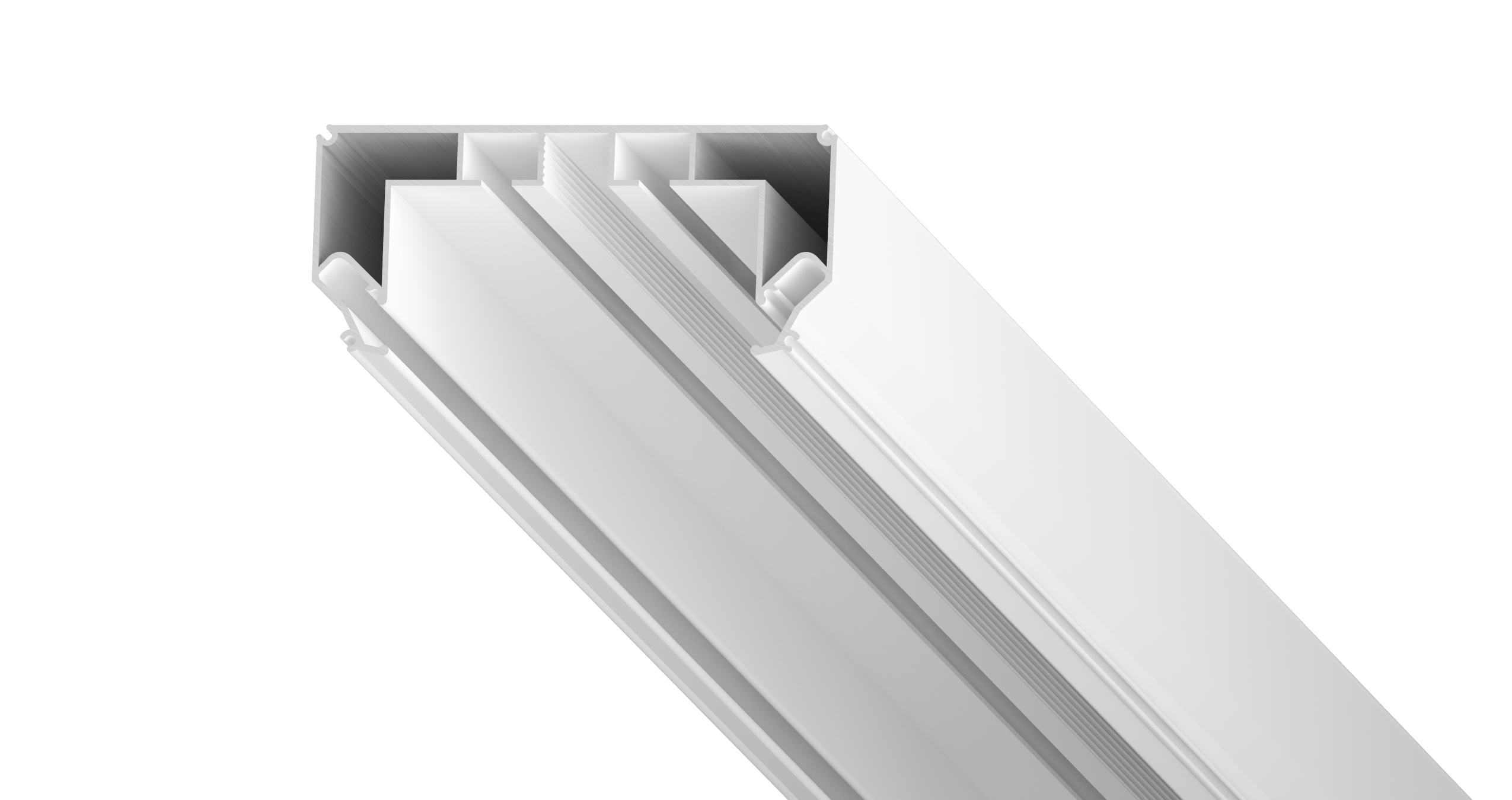 Универсальный карниз – разновидность дизайнерского карниза. Он представляет собой цельнометаллический профиль белого или черного цвета с двумя рядами для крепления крючков и местом для установки подсветки. Карниз имеет оптимальную ширину для того, чтобы складки на шторах формировались правильно. Возможна установка светодиодной ленты для подсветки штор, которая направлена вертикально вниз и закрывается рассеивателем. Конструкция профиля предусматривает фиксацию полотна при помощи гарпунной системы крепления. Вертикальный паз для заправки гарпуна закрывается разделительной вставкой (R).