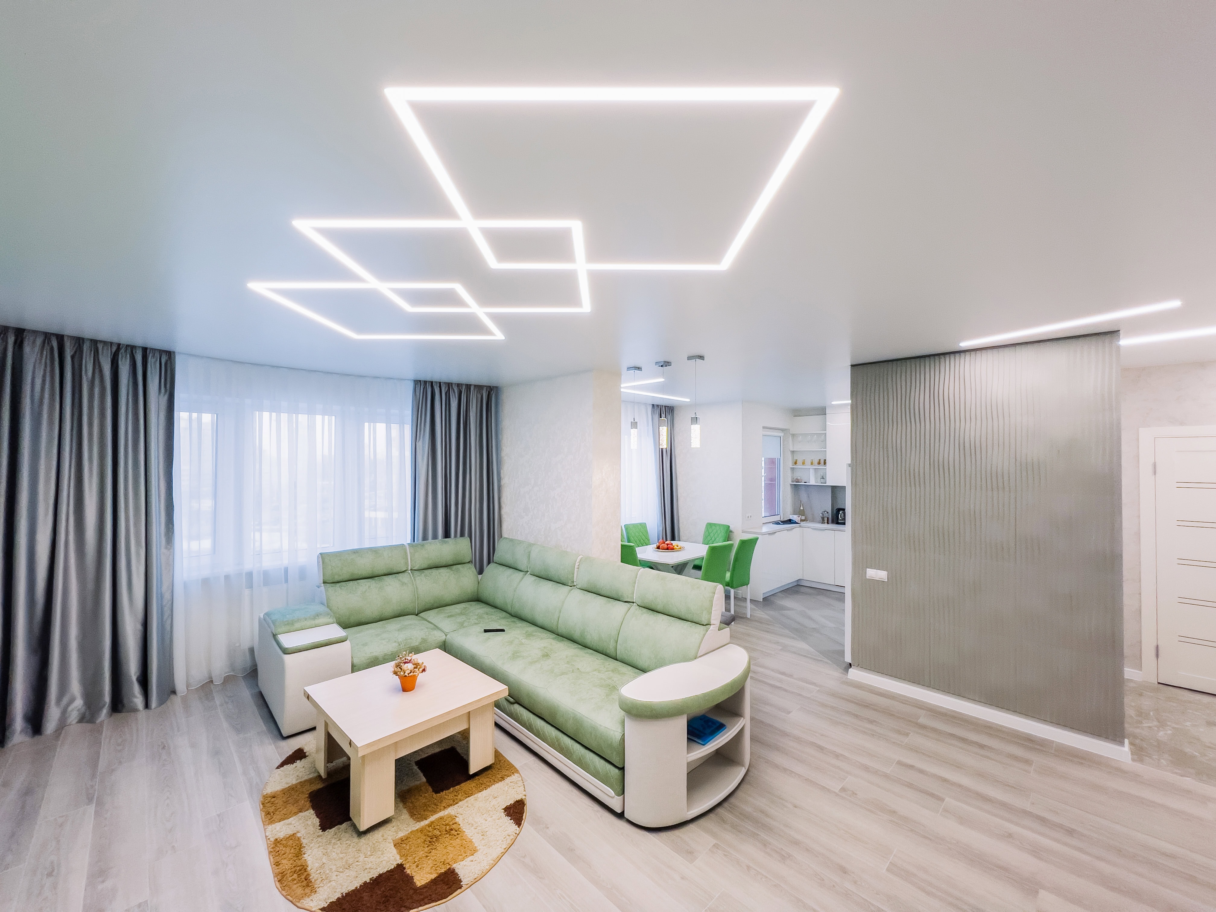 Универсальный карниз – разновидность дизайнерского карниза. Он представляет собой цельнометаллический профиль белого или черного цвета с двумя рядами для крепления крючков и местом для установки подсветки. Карниз имеет оптимальную ширину для того, чтобы складки на шторах формировались правильно. Возможна установка светодиодной ленты для подсветки штор, которая направлена вертикально вниз и закрывается рассеивателем. Конструкция профиля предусматривает фиксацию полотна при помощи гарпунной системы крепления. Вертикальный паз для заправки гарпуна закрывается разделительной вставкой (R).
