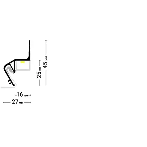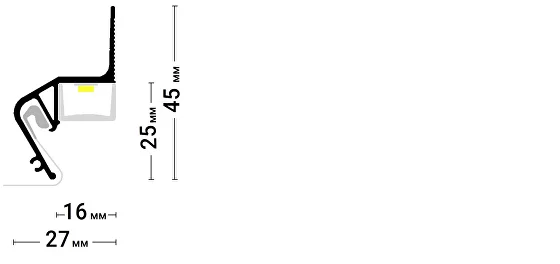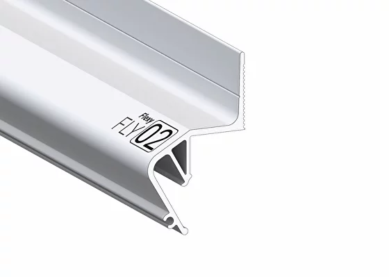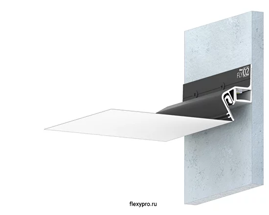Стеновой парящий профиль ПФ 8406 или Flexy FLY 02 для натяжных потолков с гарпунной системой крепления полотна. С полкой для светодиодной ленты и креплением для светорассеивающей вставки.