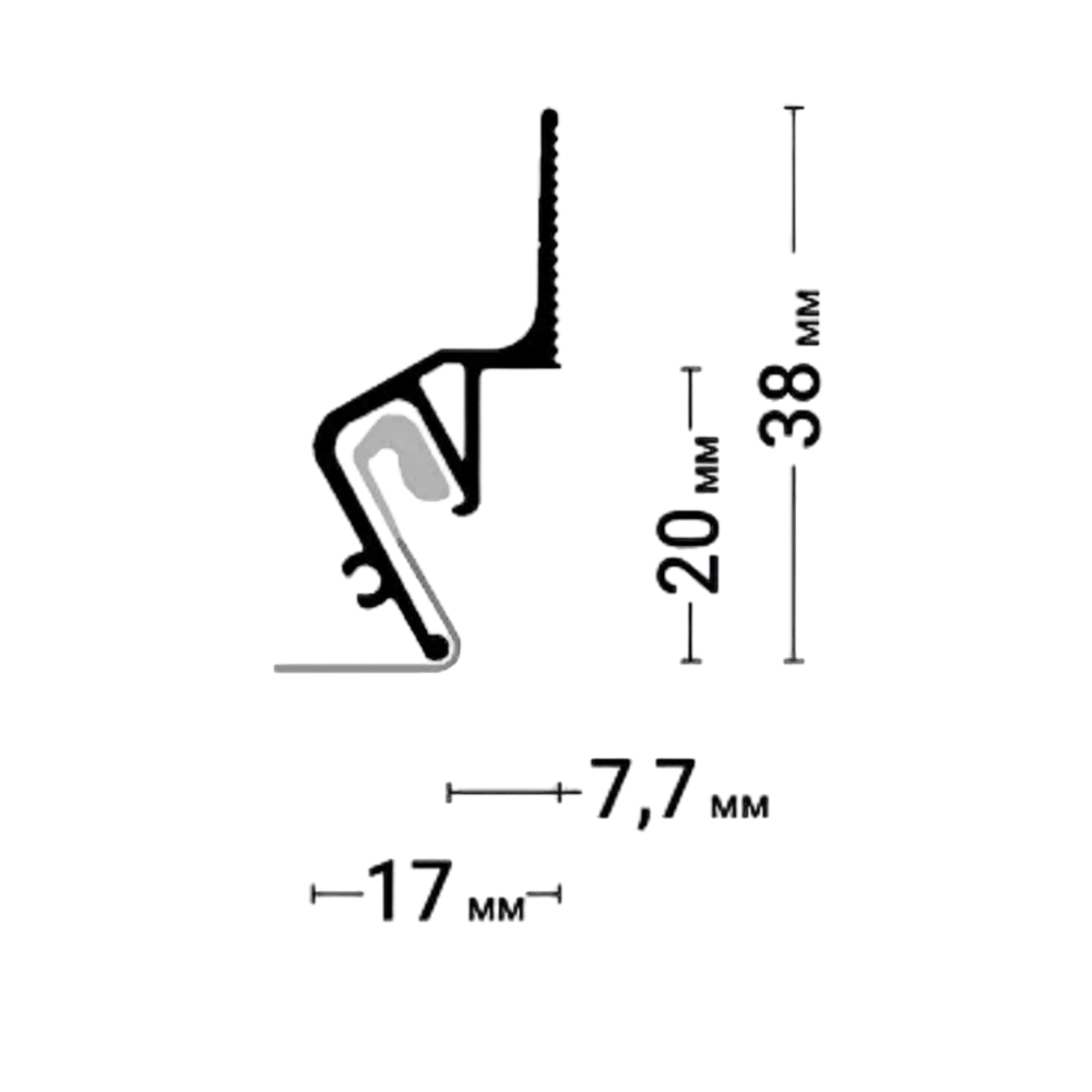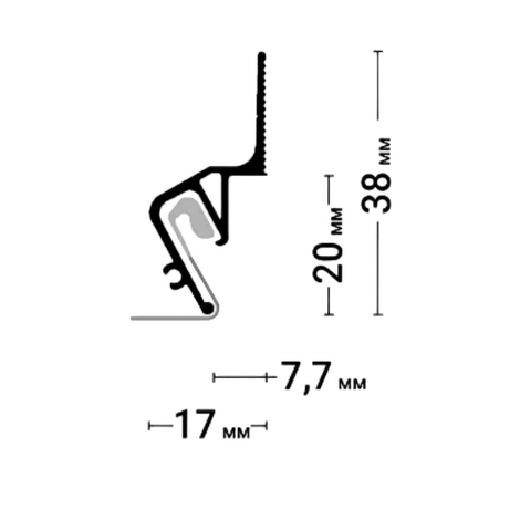 Стеновой профиль Flexy EURO 05 с теневым зазором для натяжных потолков с гарпунной системой крепления полотна.
