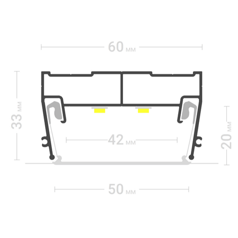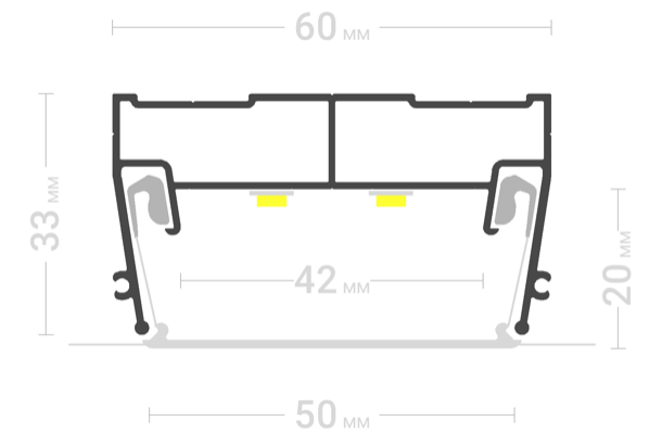 Профиль ПФ-7320 Световые линии ширина 50 мм используется для изготовления натяжных потолков с подсветкой.
